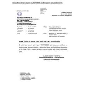 Γραφείο Νομικών και Κοινοβουλευτικών Θεμάτων προωθεί το έγγραφο της Γενικής