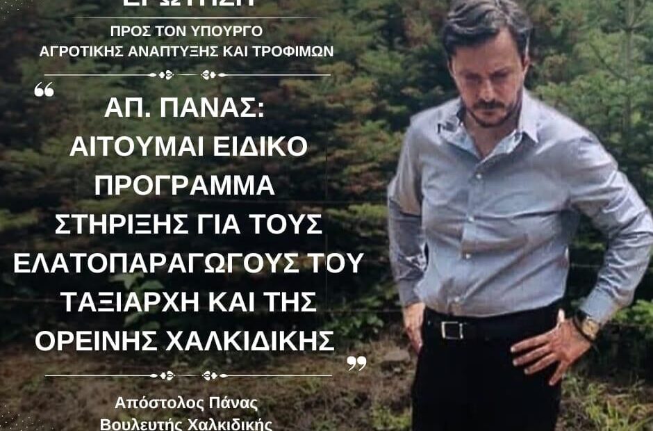 «ΑΠ.ΠΑΝΑΣ: ΑΙΤΟΥΜΑΙ ΕΙΔΙΚΟ ΠΡΟΓΡΑΜΜΑ ΣΤΗΡΙΞΗΣ ΓΙΑ ΤΟΥΣ ΕΛΑΤΟΠΑΡΑΓΩΓΟΥΣ ΤΟΥ ΤΑΞΙΑΡΧΗ ΚΑΙ ΤΗΣ ΟΡΕΙΝΗΣ ΧΑΛΚΙΔΙΚΗΣ»