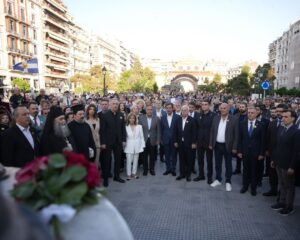 Συνοδευόμενη από τον Αντιπεριφερειάρχη Θεσσαλονίκης Κώστα Γιουτίκα, η κ. Αηδονά κατέθεσε στεφάνι στο μνημείο Γενοκτονίας Ποντιακού Ελληνισμού και στη συνέχεια απηύθυνε χαιρετισμό στο πλαίσιο της εκδήλωσης μνήμης.