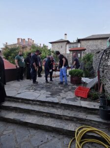 Σήμερα 22 Μαΐου 2025 στις 20:00 το απόγευμα και ενώ τρία μέλη της αδελφότητάς της Ιεράς Μονής Εσφιγμένου καθάριζαν από τα χόρτα ένα παρτέρι που βρίσκεται κοντά στο υπό κατάληψη τμήμα του αντιπροσωπείου της μονής στις Καρυές, στα πλαίσια του ετήσιου ευπρεπισμού για την επικείμενη πανήγυρη του μοναστηριού της εορτής της Αναλήψεως, ξαφνικά και χωρίς καμία αιτία, τους επιτέθηκαν δύο άτομα αγνώστων στοιχείων.