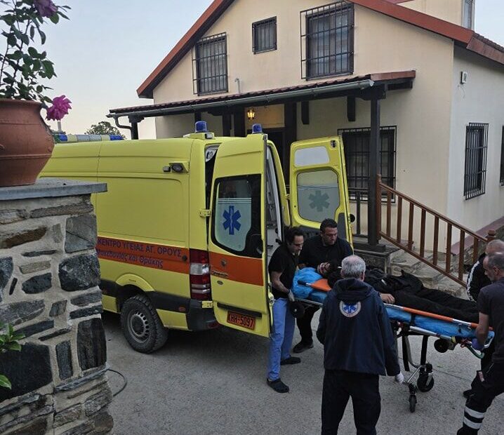 Κλήθηκε ασθενοφόρο το οποίο παρέλαβε τον τραυματία που νοσηλεύεται στο Κέντρο Υγείας Αγίου Όρους και ενημερώθηκε το Αστυνομικό Τμήμα Καρεών.