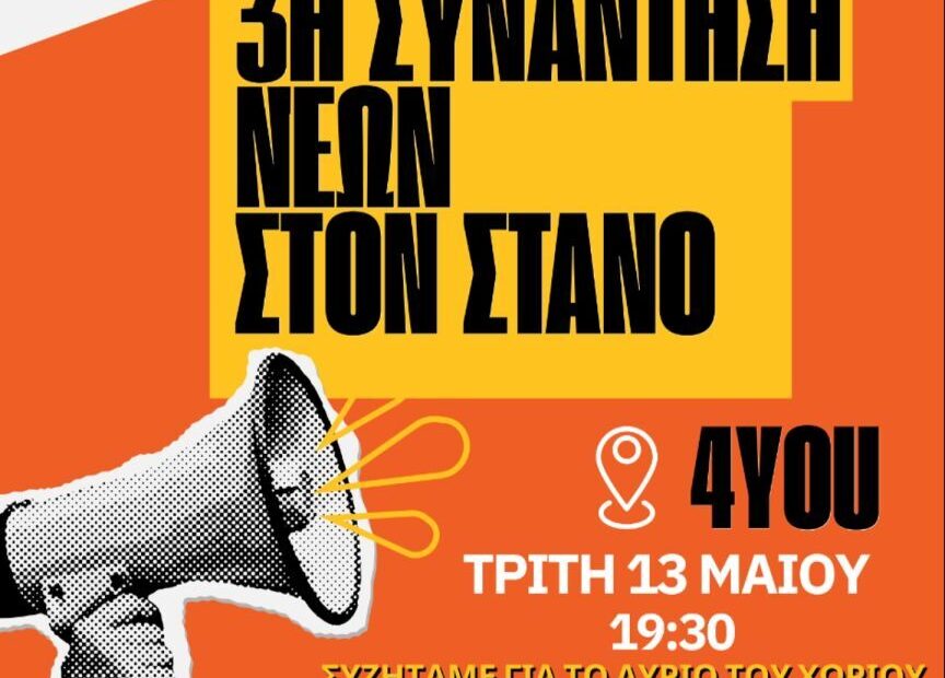 Η συνάντηση θα πραγματοποιηθεί αύριο, Τρίτη 13 Μαΐου 2025, στις 7:30 μ.μ. στο χώρο 4YOU.