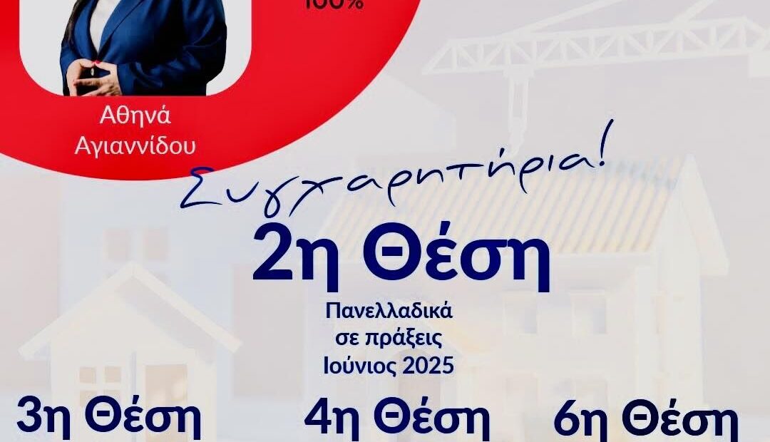 Αθηνά Αγιάννίδου: Πανελλαδική Διάκριση στην Αγορά Ακινήτων – «Η επιτυχία είναι εμπιστοσύνη και ικανοποίηση»
