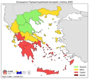 Η Πυρομετεωρολογική Ομάδα FLAME της Μονάδας Meteo του Εθνικού Αστεροσκοπείου Αθηνών (ΕΑΑ) δημοσίευσε την εποχική εκτίμηση του πυρομετεωρολογικού δυναμικού για την Ελλάδα, καλύπτοντας τους μήνες Ιούλιο, Αύγουστο και Σεπτέμβριο του 2025. Η ανάλυση, βασισμένη σε μετεωρολογικά δεδομένα και προγνωστικά μοντέλα, υποδεικνύει μια αυξημένη περίοδο κινδύνου πυρκαγιάς για τη Χαλκιδική και άλλες περιοχές της χώρας.