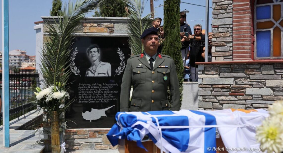 Νέος Μαρμαράς, Χαλκιδικής – Με δέος και εθνική υπερηφάνεια, ο Νέος Μαρμαράς τίμησε την Κυριακή 27 Ιουλίου τον ήρωα της ΕΛΔΥΚ, Στέφανο Κουτρούλη, καθώς τα οστά του επέστρεψαν στην πατρώα γη, 51 χρόνια μετά την ηρωική του θυσία κατά τον πόλεμο του 1974.