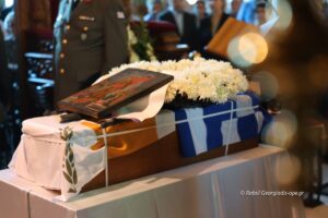 Σε μια τελετή γεμάτη συναισθήματα, που έλαβε χώρα στον Ιερό Ναό Παμμεγίστων Ταξιαρχών, πλήθος κόσμου συγκεντρώθηκε για να αποδώσει φόρο τιμής. Παρόντες ήταν οι συγγενείς του ήρωα, συναγωνιστές του από την ΕΛΔΥΚ, εκπρόσωποι των Ενόπλων Δυνάμεων και των Σωμάτων Ασφαλείας, καθώς και πολλοί συμπολίτες που θέλησαν να υποκλιθούν μπροστά στο μεγαλείο της αυτοθυσίας.