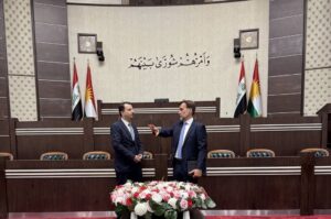 Ο Δρ. Χουρδάκης έγινε δεκτός στο Κοινοβούλιο της Περιφέρειας από τον Dr. Bryar Sherko Baban, Σύμβουλο και Επικεφαλής Διεθνών Σχέσεων & Πρωτοκόλλου, ο οποίος τον ξενάγησε στο κτίριο και του παρουσίασε το έργο και τις αρμοδιότητες του Κουρδικού Κοινοβουλίου.