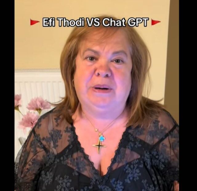 Στο βίντεο, η Έφη Θώδη αποκαλεί το Chat GPT «σύστημα του διαβόλου» και «κατάρα του αιώνος», τονίζοντας ότι προσπαθεί να καταστρέψει την κοινωνία χωρίς, ωστόσο, να το καταφέρει.