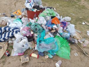 Είναι η εικόνα που επαναλαμβάνεται κάθε χρόνο: οι επισκέπτες απολαμβάνουν τη θάλασσα και τον ήλιο, αλλά φεύγοντας, αφήνουν πίσω τους ένα βουνό από σκουπίδια. Πλαστικά μπουκάλια, σακούλες, κουτάκια αναψυκτικών, ακόμα και προσωπικά αντικείμενα, συνθέτουν ένα αποκαρδιωτικό τοπίο. Αυτό που κάνει την κατάσταση ακόμα πιο οδυνηρή είναι το γεγονός ότι σε κοντινή απόσταση υπήρχε ένας άδειος κάδος απορριμμάτων, έτοιμος να εξυπηρετήσει όσους είχαν την ευθύνη να τον χρησιμοποιήσουν.