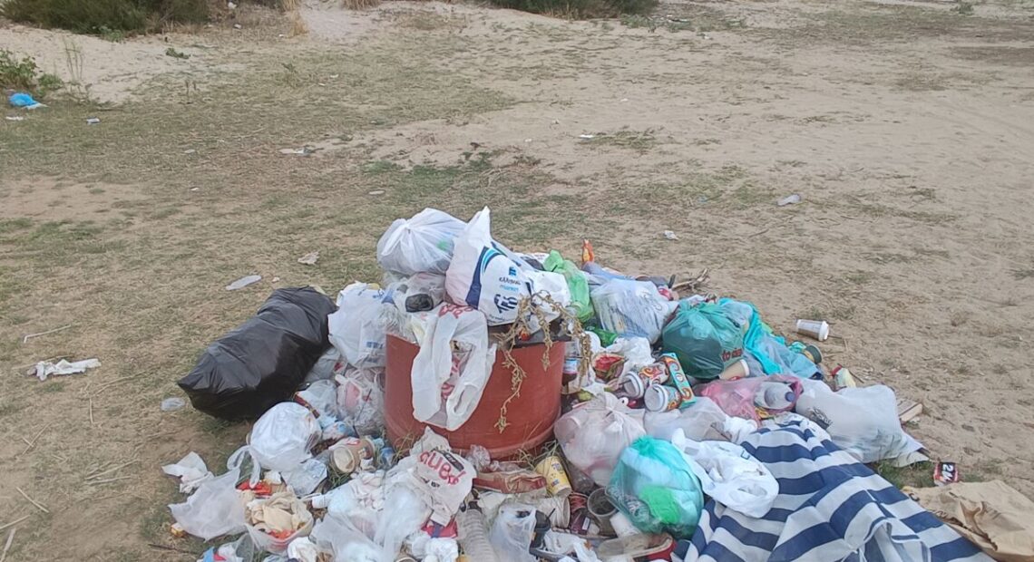 Είναι η εικόνα που επαναλαμβάνεται κάθε χρόνο: οι επισκέπτες απολαμβάνουν τη θάλασσα και τον ήλιο, αλλά φεύγοντας, αφήνουν πίσω τους ένα βουνό από σκουπίδια. Πλαστικά μπουκάλια, σακούλες, κουτάκια αναψυκτικών, ακόμα και προσωπικά αντικείμενα, συνθέτουν ένα αποκαρδιωτικό τοπίο. Αυτό που κάνει την κατάσταση ακόμα πιο οδυνηρή είναι το γεγονός ότι σε κοντινή απόσταση υπήρχε ένας άδειος κάδος απορριμμάτων, έτοιμος να εξυπηρετήσει όσους είχαν την ευθύνη να τον χρησιμοποιήσουν.