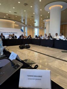 Η συνάντηση έγινε παρουσία του Αντιπροέδρου της Κυβέρνησης, Κωστή Χατζηδάκη, του Υπουργού Εσωτερικών, Θεόδωρου Λιβάνιου, και άλλων υψηλόβαθμων στελεχών.