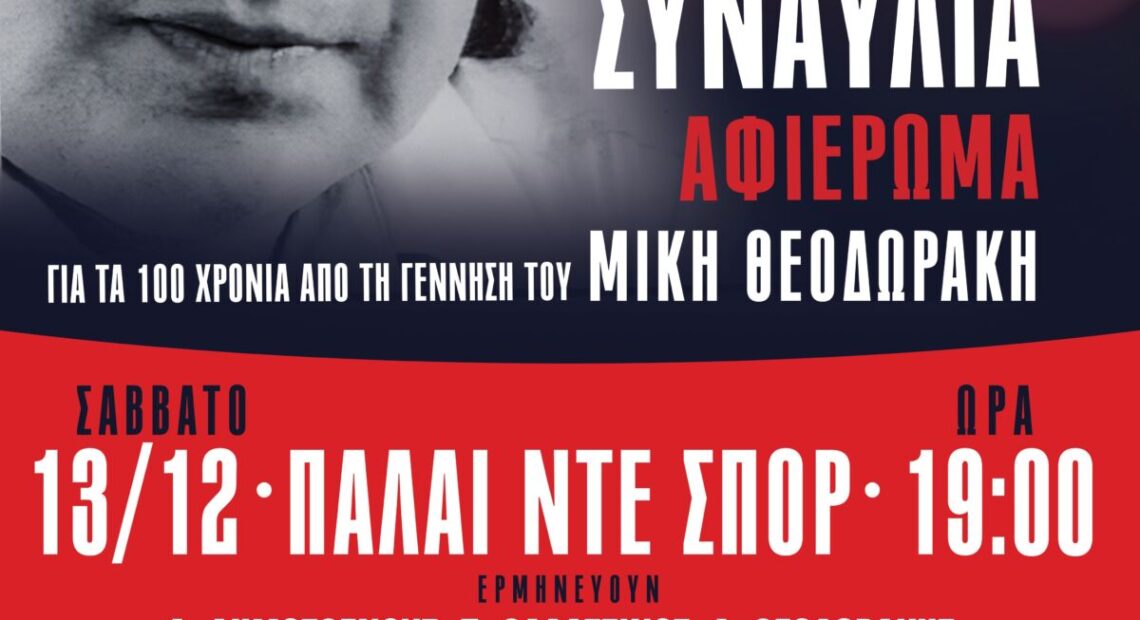 Η Κεντρική Επιτροπή του ΚΚΕ και η οικογένεια του Μίκη Θεοδωράκη μεταφέρουν στη Θεσσαλονίκη το μεγάλο αφιέρωμα για τα 100 χρόνια από τη γέννηση του μεγάλου συνθέτη, μια εκδήλωση που είχε ήδη πραγματοποιηθεί με τεράστια επιτυχία στο Καλλιμάρμαρο τον Ιούνιο του 2026.