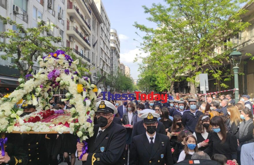 Στον ιστορικό ναό του Αγίου Μηνά, στη Θεσσαλονίκη, πραγματοποιείται αυτή την ώρα, σε κλίμα κατάνυξης η πρώτη περιφορά επιταφίου, με χιλιάδες πιστούς να ακολουθούν την πομπή. ΡΕΠΟΡΤΑΖ: ΑΝΤΩΝΗΣ ΤΣΟΛΝΑΡΑΣ Υπό τους ήχους της Φιλαρμονικής του δήμου Θεσσαλονίκης, της μπάντας της Ελληνικής Αστυνομίας και των προσκόπων Νεάπολης, η περιφορά του Επιταφίου μετά από δύο χρόνια φραγμών