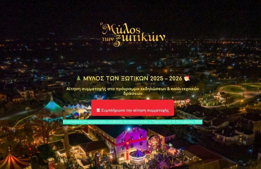 Και για τις καλλιτεχνικές εκδηλώσεις και δράσεις ο Μύλος των Ξωτικών απευθύνεται στους φορείς, τους συλλόγους, τα σωματεία, τους πολίτες. Ο 14ος Μύλος των Ξωτικών ξεκινά στις 21 Νοεμβρίου 2025 και θα φιλοξενήσει δραστηριότητες που παρουσιάζονται στην κεντρική σκηνή του Μύλου. Η ένταξη στο πρόγραμμα εκδηλώσεων, οι χορωδίες, τα χορευτικά, οι ιδέες για νέα δράση, […]