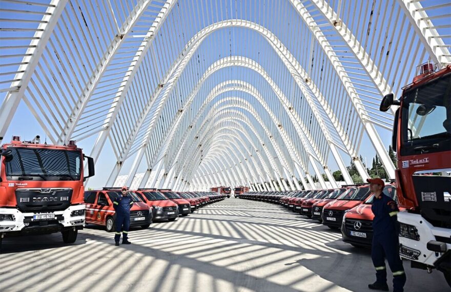 Επιμέλεια Αναστασία Δεκάκη Σε μια ειδική τελετή που πραγματοποιήθηκε στο ΟΑΚΑ, παραδόθηκαν στην Πυροσβεστική 164 νέα οχήματα, συνολικής αξίας 15,55 εκατομμυρίων ευρώ, ενισχύοντας σημαντικά τις επιχειρησιακές δυνατότητες του Σώματος. Την εκδήλωση τίμησε με την παρουσία του ο Πρωθυπουργός, Κυριάκος Μητσοτάκης, ο οποίος υπογράμμισε την προσήλωση της κυβέρνησης στην ενίσχυση
