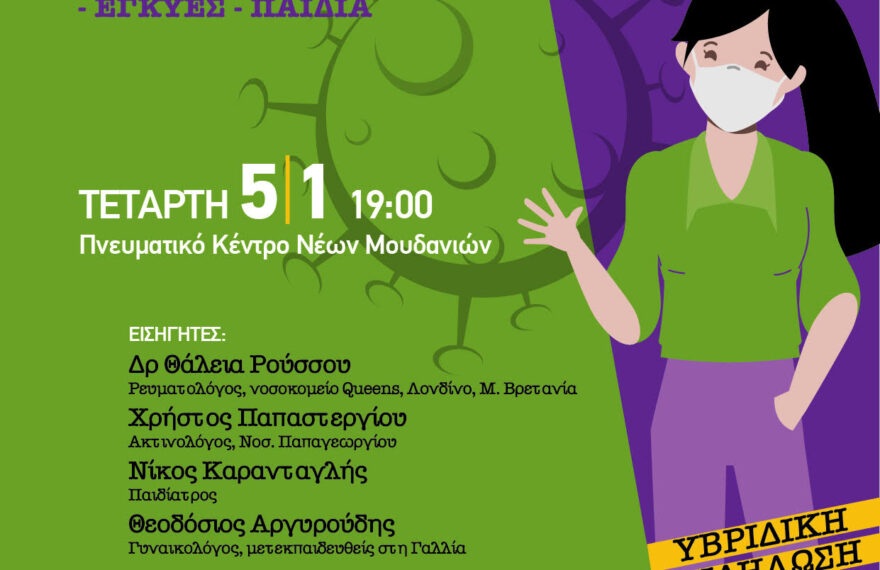 Κορωνοϊός ΤΩΡΑ! Από την Α στην Ο. Εμβολιασμοί, ενήλικες, έγκυες, παιδιά Σας προσκαλούμε στην υβριδική εκδήλωση «Κορωνοϊός Τώρα! Από την Α στην Ο. Εμβολιασμοί, ενήλικες, έγκυες, παιδιά» της Περιφερειακής Οργάνωσης Κεντρικής Μακεδονίας των Οικολόγων ΠΡΑΣΙΝΩΝ, που θα πραγματοποιηθεί την Τετάρτη, 5 Ιανουαρίου 2022 και ώρα 19:00 με 21:00 στο Πνευματικό Κέντρο Νέων Μουδανιών,