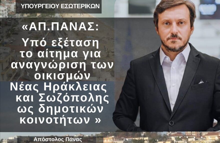 Απάντηση έλαβε ο Βουλευτής ΠΑΣΟΚ-Κινήματος Αλλαγής Χαλκιδικής κ. Απόστολος Πάνας, στην αριθ. πρωτ. 2564/09-01-2025 κοινοβουλευτική ερώτηση προς το Υπουργείο Εσωτερικών, αναφορικά με την αναγνώριση των οικισμών Νέας Ηράκλειας και Σωζόπολης ως δημοτικών κοινοτήτων του Δήμου Νέας Προποντίδας. Στην Απάντησή του το Υπουργείο Εσωτερικών επισημαίνει ότι, σύμφωνα με την ισχύουσα