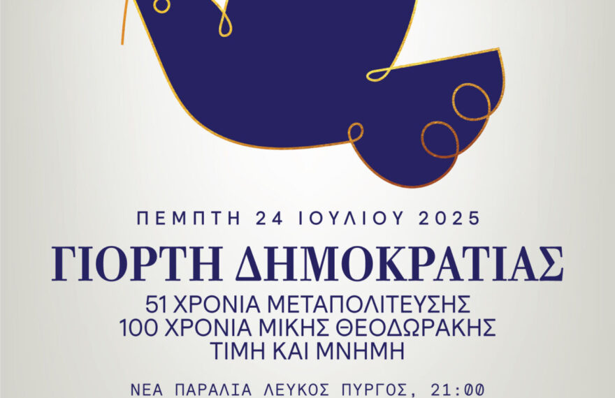 Θεσσαλονίκη – Ο Δήμος Θεσσαλονίκης συνεχίζει για δεύτερη συνεχή χρονιά την καθιερωμένη πλέον «Γιορτή Δημοκρατίας», έναν νέο θεσμό τιμής, μνήμης και πολιτιστικής έκφρασης, με αφορμή την επέτειο της Αποκατάστασης της Δημοκρατίας στην Ελλάδα. Η φετινή εκδήλωση θα πραγματοποιηθεί την Πέμπτη 24 Ιουλίου 2025, στις 21:00, στη Νέα Παραλία, κοντά στον Λευκό Πύργο, με ελεύθερη