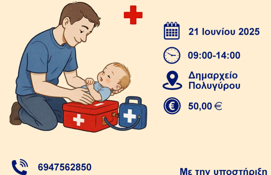 Οι Έλληνες Διασώστες σε συνεργασία με τον Δήμο Πολυγύρου διοργανώνουν ένα εξειδικευμένο πιστοποιημένο σεμινάριο πρώτων βοηθειών, με επίκεντρο τη φροντίδα παιδιών και βρεφών, το Σάββατο 21 Ιουνίου 2025, και ώρες 09:00-14:00, στο Δημαρχείο Πολυγύρου. Το σεμινάριο απευθύνεται σε γονείς, εκπαιδευτικούς, παιδαγωγούς, φροντιστές και κάθε πολίτη που επιθυμεί να αποκτήσει ή να